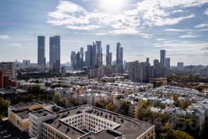 В квартире тринадцать окон видами на Москва-Сити, Бадаевский, гостиницу Украина, реку.