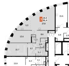 Продаётся 3-к квартира общей площадью 86,4 кв.м. на 41-м этаже.