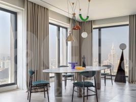 Уникальная просторная квартира, где панорама Москвы становится частью интерьера. Авторский проект AB-Architects создан в духе современного минимализма: чистая геометрия, тактильные материалы, свет и воздух, из которых складывается тишина и безупречный ритм. Просторная гостиная с кухней-столовой формирует центр квартиры, объединяя зону отдыха и общения. В приватной части - мастер-спальня с ванной и гардеробной, спальни для семьи и гостей, постирочная и функциональные гардеробные. Здесь всё продумано до деталей - от линий потолков до сценариев освещения. Каждый метр отражает архитектурную логику и спокойную роскошь пространства, созданного для тех, кто ценит форму, свет и абсолютное качество жизни. Квартира полностью меблирована и оснащена современной техникой, готова к проживанию.