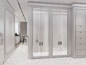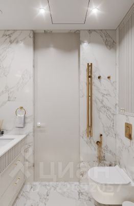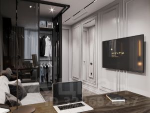 Планировочное решение потенциально предполагает 1-2 спальни и просторную кухонно гостиную зону. В апартаменте 2 санузла, большая гардеробная при входе.