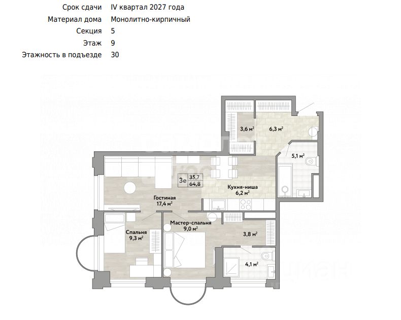 Арт. 119189207 Уступка Е3 комнатная квартира площадью 64,8м2!