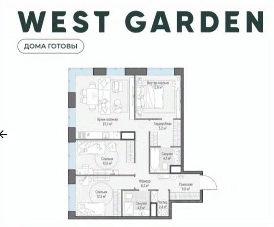 ЖК West Garden — семейный квартал на берегу реки Раменки, в 10 минутах ходьбы от Матвеевского леса и Мосфильмовского пруда. ЖК West Garden уникальный проект бизнес-класса, расположенный на территории престижного Западного округа, в зелёном и тихом районе вдоль улицы Минская, по соседству с респектабельными жилыми комплексами. Клубные дома находятся в просторном ландшафтном парке 16 га, на территории которого расположены детские площадки, спортивные площадки, зоны уединенного отдыха. Благоустроенная набережная длинной 2 км и площадью 8 га вдоль реки Раменки! Закрытый двор без машин, современный подземный паркинг. Красивейшие лобби с потолками 4 метра, стойкой ресепшен и премиальной отделкой! West Garden располагает богатейшей инфрастуктурой премиального уровня: бесплатный фитнес для жителей комплекса, детская игровая зона, уютная гостиная для встреч, консьерж- сервис! Локация Для Жизни: рядом парк Долина реки Сетунь, Матвеевский лес, Мосфильмовский пруд, природный заказник Воробьевы горы, Ботанический сад Мгу, престижные школы и лицеи, частные детские сады, Мгу им. Ломоносова, Мосфильм, Посольский квартал, центры для досуга и спорта, ТЦ Океания.