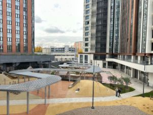 В комплексе есть коворкинг, лаундж-зона, ресторан, фитнес-зона, детская комната