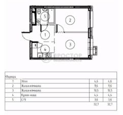 - Общая площадь: 32,70 кв.м