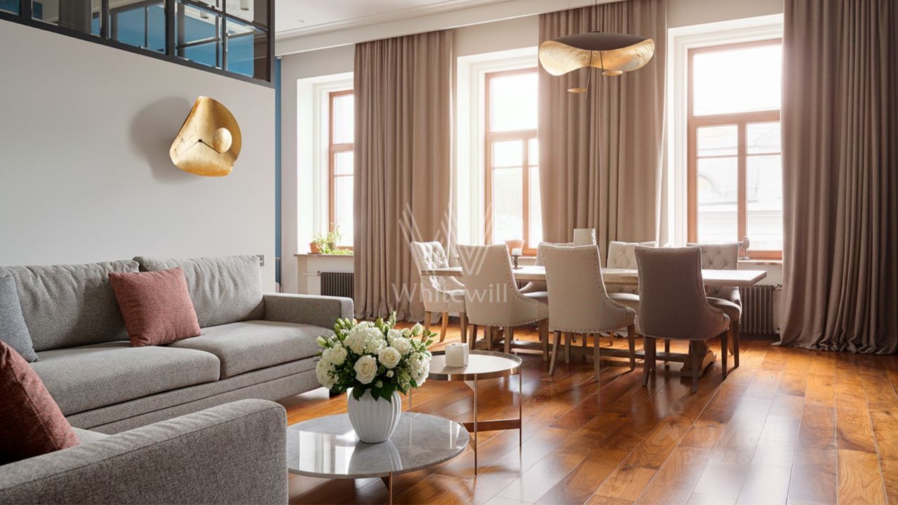 Стильная дизайнерская квартира общей площадью 210 м² в "Соляной доме" - памятнике архитектуры на 2-м этаже.