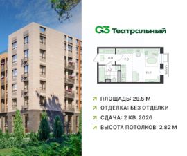 В современном квартале бизнес-класса G3 Театральный продаётся квартира-студия, общей площадью 29.5 кв.м, расположенная на 4 этаже (корпус 2, секция 7).