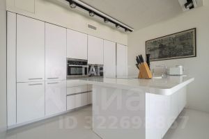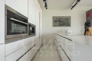 Интерьер выполнен исключительно из высококачественных материалов, подобранных профессионалами своего дела. Здесь каждая деталь подчёркивает изысканный вкус владельцев и создаёт атмосферу домашнего комфорта. Особого внимания заслуживает кухонный гарнитур, укомплектованный новейшей техникой KUPPERSBUSCH. Ванная комната декорирована благородным белоснежным мрамором, а бытовая техника представлена продукцией престижного бренда MIELE.
