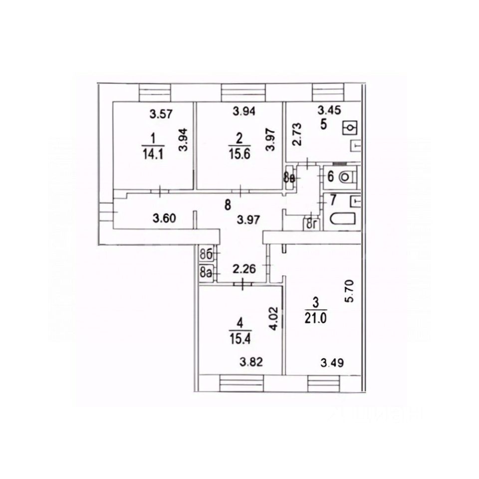 Гостиная - 21 м² и спальная комната -15,6 м²,окна выходят на тихую улицу Генерала - Ермолова.