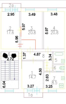 Кухня 9 кв.м. есть возможность присоединить к ней одну комнату - 14,7 кв.м. (стена не несущая).