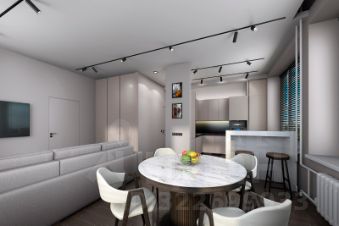 В квартире три комнаты, большая кухня площадью 32 кв. м и один совмещенный санузел. Установлены премиальные окна Melke Evolution цвет Антрацит. Из окон открывается вид на улицу на три стороны.