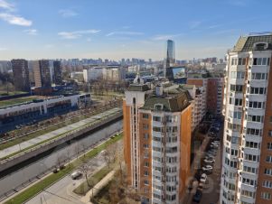 Продаются апартаменты в современном бизнес-центре, расположенном на первой линии Рубцовской набережной с панорамным видом на Яузу и на центр Москвы. Это просторная трехкомнатная квартира общей площадью 101 кв. м с жилой площадью 69 кв. м, расположенная на 13 этаже 22-этажного дома. Высокие потолки 3.4 метра создают ощущение простора и свободы.