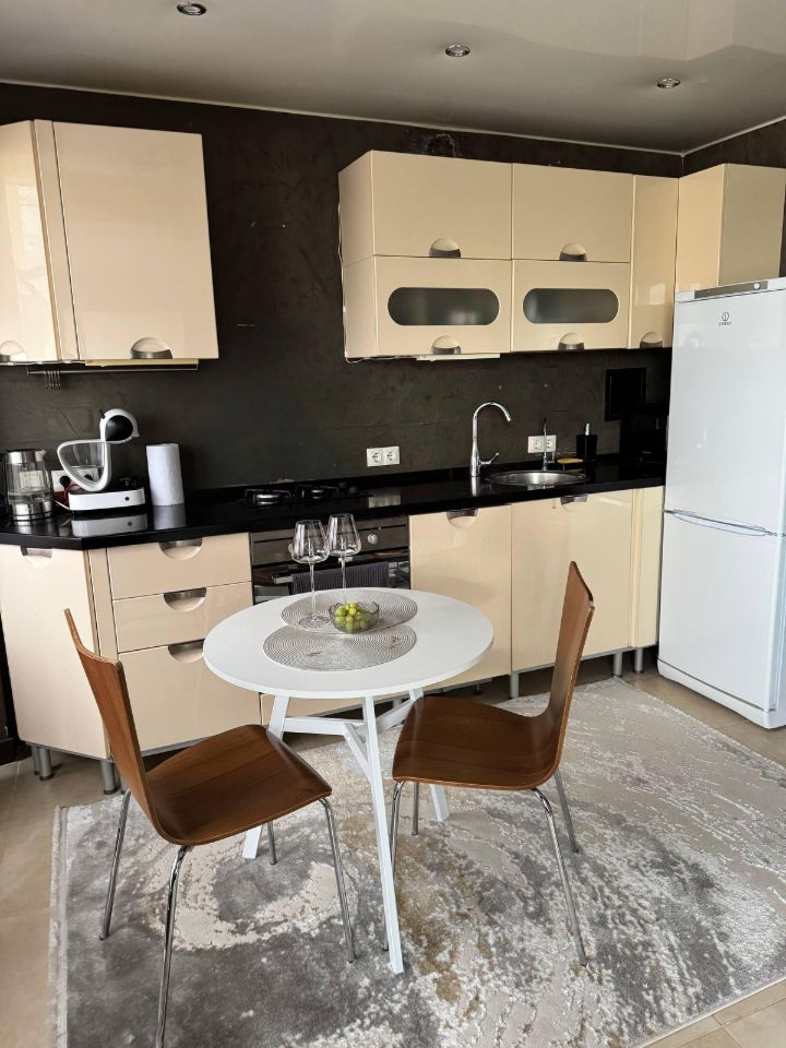 Установлен фильтр и кран с питьевой водой. Двухспальная кровать. Диван также раскладывается в полноценное спальное место.Панорамное окно, широкий подоконник. Несколько шкафов. В ванной теплые полы. Открытый балкон со стеллажами для хранения, на котором летом приятно наблюдать закат сидя за столиком.