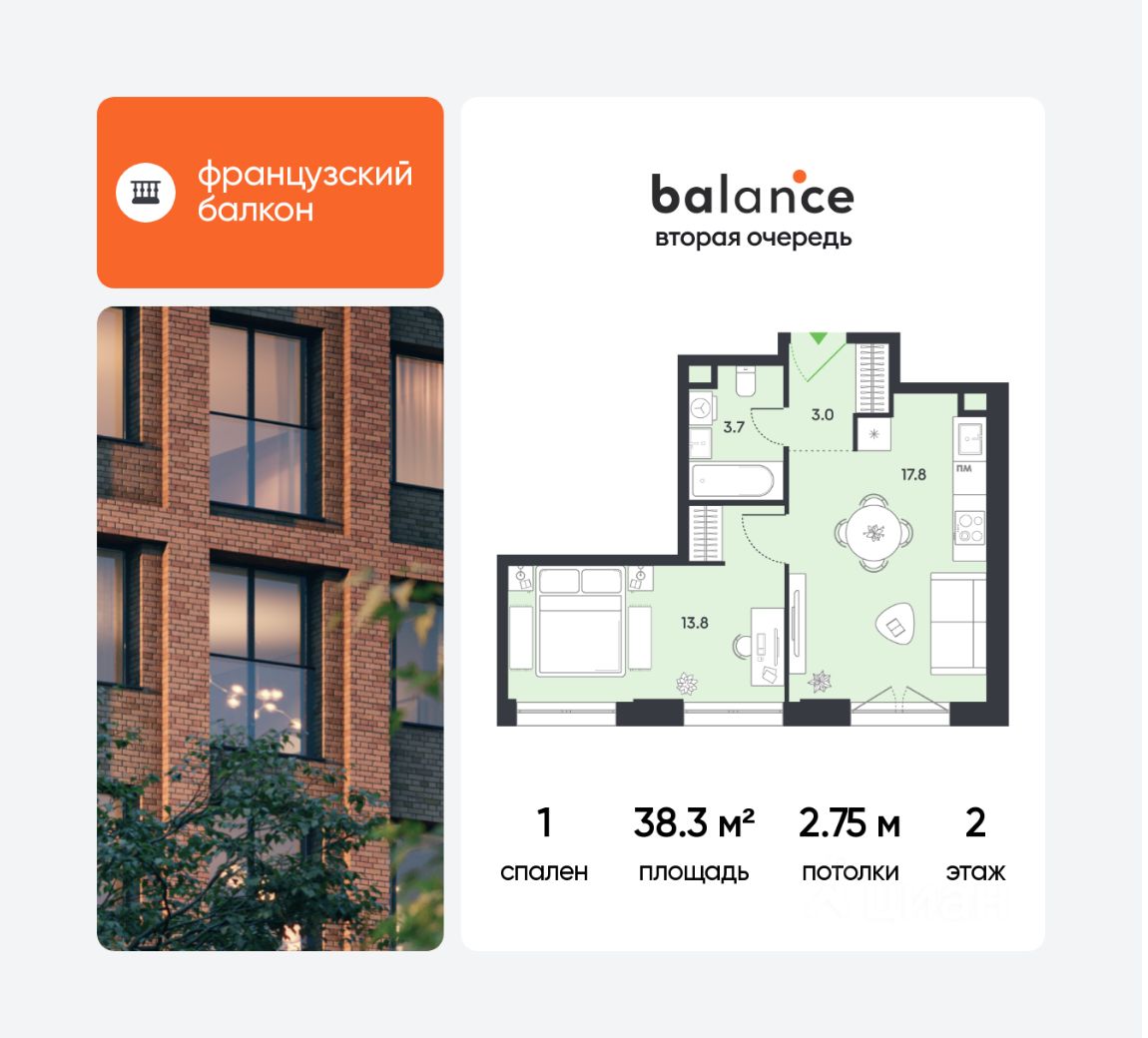 17,8 м²