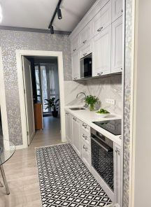 Английские обои Little Greene встраиваемый кухонный гарнитур выполненная по индивидуальным размерам компании Стильные кухни, варочная панель, духовой шкаф и микроволновая печь марки Bosh. Встроенный холодильник Liebherr и отдельно стоящая встроенная морозильная камера Liebherr, наличие кондиционера.