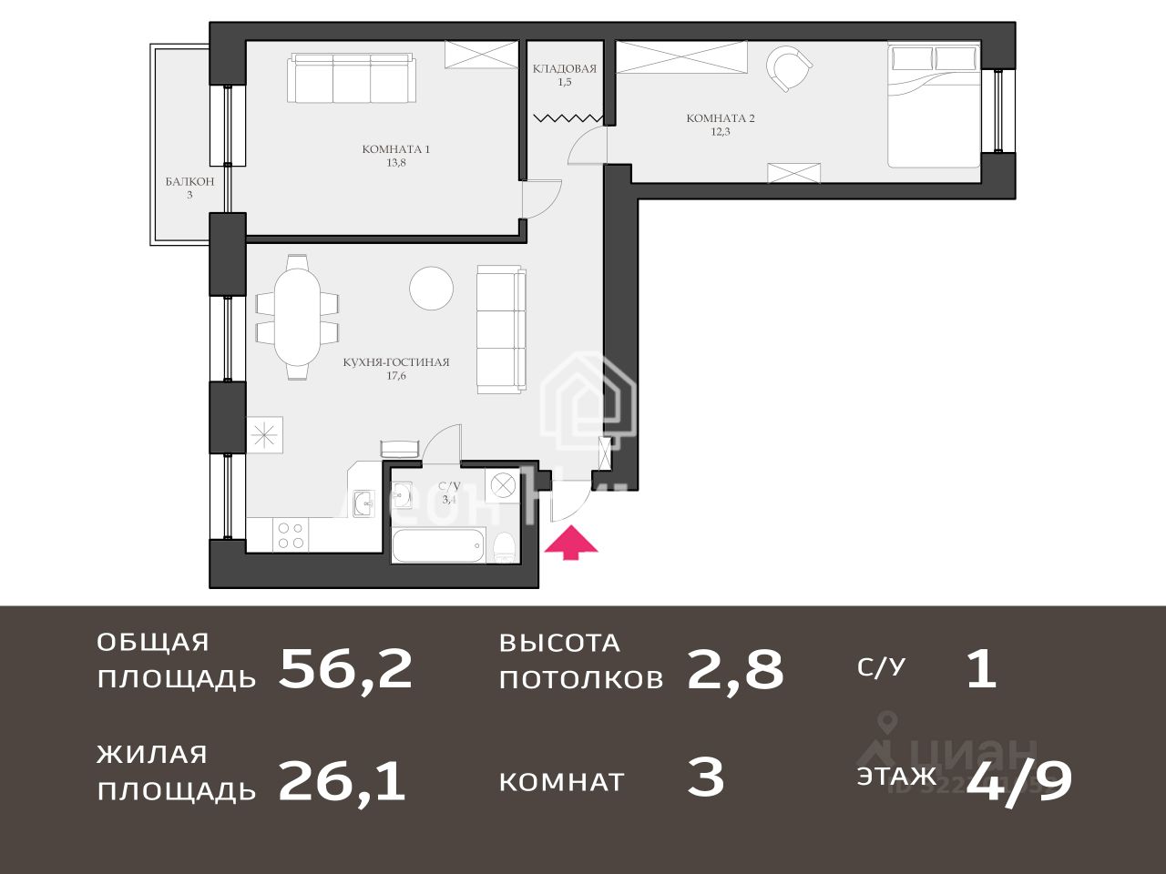 Просторная и уютная евро 3-комнатная квартира площадью 56,2 м2. В квартире выполнен косметический ремонт. Можно сразу заехать и жить, а также есть прекрасная возможность сделать ремонт под себя и воплотить все свои дизайнерские идеи! Высокие потолки - 2,8 м, 2 изолированные комнаты, из одной есть выход на балкон, просторная кухня-гостиная, кладовка и с/у - все это позволит Вам жить в полном комфорте. В квартире очень тепло. Хорошая шумоизоляция. Также можно грамотно организовать места для хранения. Отлично подходит для семьи. Благодаря большой площади каждой комнаты их назначение и обстановку можно легко менять в соответствие с потребностями и вкусами собственников.