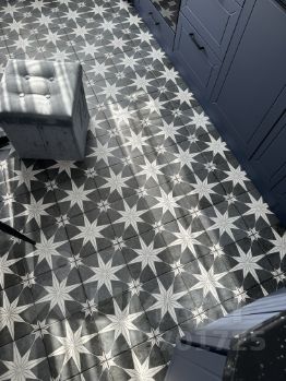Пол в ванной и кухне керамогранит - с легким винтажным эффектом - выполнен единым контуром.