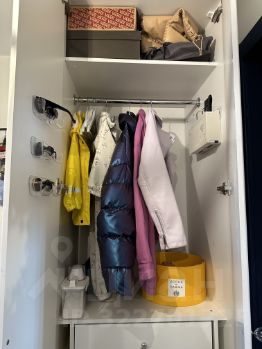 В квартире два балкона. Оба балкона теплые с подогревом пола. На балконе в спальне встроены шкафы для одежды, балкон в гостиной зона хранения. А в спальне по правилам сохранения теплового контура было установлено остекление между балконом и спальней, но мы ранее жили без него.
