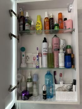 В ванной комнате колонна выполнена из испанской плитки, со скрытым ревизионным люком, чаша безободковая с инсталляцией от самой надежной фирмы TECE. Пол керамогранит с подогревом. Электрический полотенцесушитель с функциями по мощности и таймером отключения. Ванна каменная ( под ванну имеется доступ, крайняя нижняя левая плитка на магнитах ), большой и функциональный шкаф над раковиной с подсветкой зеркала и местом для хранения а также с розеткой для зарядки щеток и прочих гаджетов прямо внутри шкафа) также в ванной имеется еще 3 доп розетки. Вся затирка эпоксидная, под раковиной доп шкаф с хранением, под ванной для удобства ниша для ног.