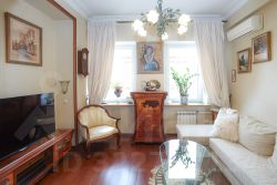 Продается великолепная 3-комнатная квартира с мебелью на ул. Земляной Вал, расположенная в историческом здании всего в пяти минутах пешком от метро Курская и в 3 км от Кремля и в непосредственной близости от всех главных достопримечательностей столицы. Квартира впечатляет своей аристократичной атмосферой: высота потолков 3,2 метра и по два окна в каждой комнате создают ощущение простора и свободы. Внутри вас ждут три изолированные жилые комнаты и уютная библиотека площадью 11 кв.м., оформленная с изысканным вкусом. Каждая комната оборудована современными кондиционерами для вашего комфорта. В квартире два совмещенных санузла: один с ванной, другой с душевой кабиной, что обеспечивает максимальное удобство для вас и ваших гостей. Встроенная итальянская кухня с техникой и газовой панелью станут настоящим украшением вашего кулинарного пространства. Элегантные межкомнатные двери из массива натурального красного дерева с итальянской фурнитурой добавляют нотки роскоши. Прихожая, выполненная из палисандра, создает теплую и уютную атмосферу. Застекленный балкон с встроенной мебелью — идеальное место для утреннего кофе или вечернего отдыха. А закрытый огороженный двор с наземной парковкой — это редкость для центра города, обеспечивающая безопасность и комфорт.