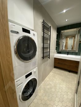В квартире выполнен дизайнерский ремонт с использованием качественных европейских материалов. На полу наборный паркет и плитка с подогревом.