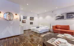 В квартире выполнен современный евроремонт. Санузел совмещенный, все коммуникации новые. Окна выходят на тихий двор, что делает квартиру особенно уютной и тихой.