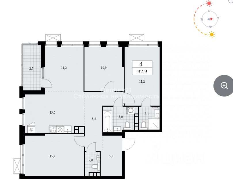 Арт. 119527979 Продается по переуступке 4- х комнатная квартира, площадью 92,9 м2.