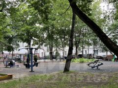 Общая кухня на три семьи, у каждой своя зона, раздельный санузел. Дом кирпичный, сталинский, есть лифт. Двор закрыт для проезда постороннего транспорта благодаря шлагбауму и оборудован детской площадкой. Рядом с домом есть всегда парковочные места.