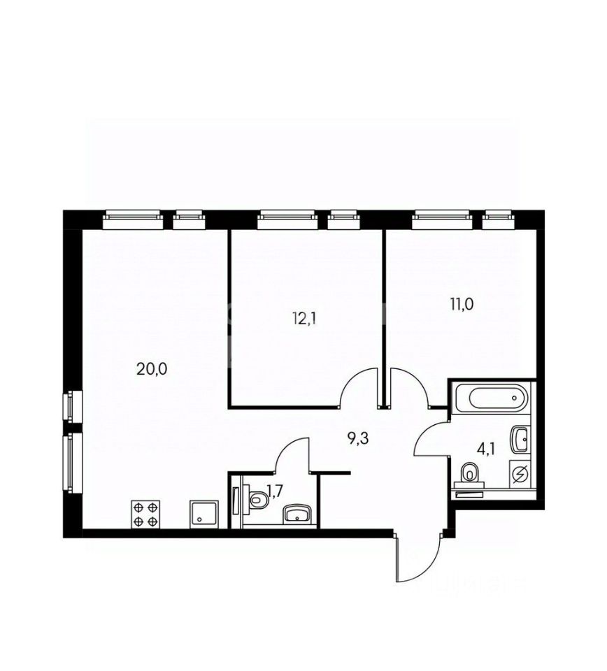 Общая площадь квартиры 58 кв.м.