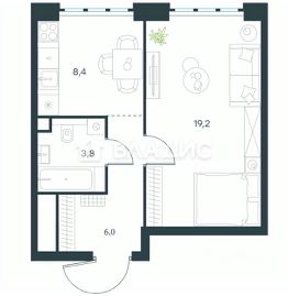 Квартира площадью 37,4 кв. м на 40-м этаже с панорамными окнами, выходящими на улицу. Это идеальный выбор для тех, кто ценит комфорт и функциональность. Просторная жилая площадь — 19,2 кв. м, а кухня занимает 8,4 кв. м. Высота потолков 2,7 м создаёт ощущение простора и свободы.