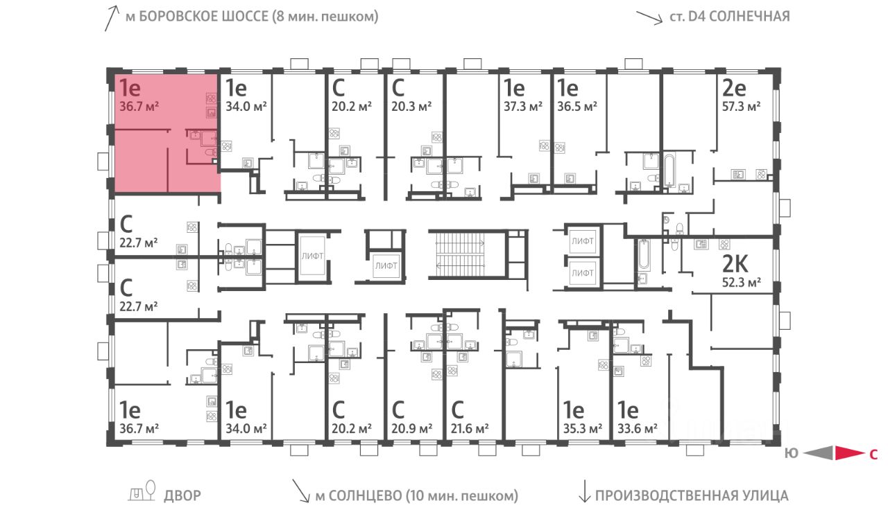 Комплекс располагается в 5 минутах ходьбы от станции метро "Солнцево" и в шаговой доступности от железнодорожной станции "Новопеределкино".
