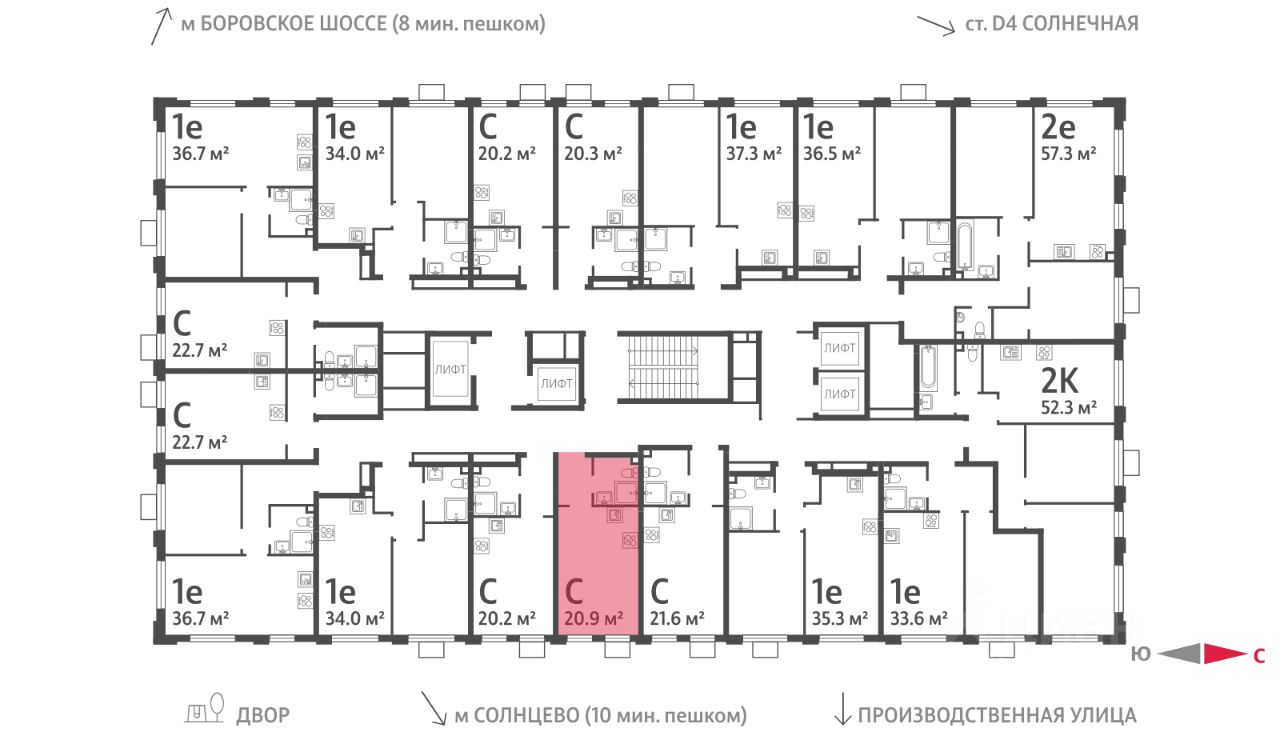 Комплекс располагается в 5 минутах ходьбы от станции метро "Солнцево" и в шаговой доступности от железнодорожной станции "Новопеределкино".