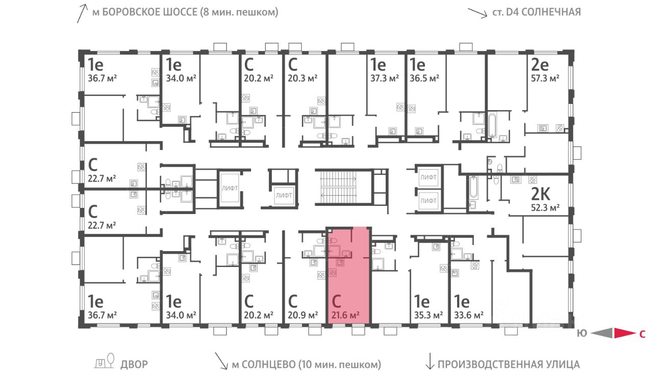 Комплекс располагается в 5 минутах ходьбы от станции метро "Солнцево" и в шаговой доступности от железнодорожной станции "Новопеределкино".