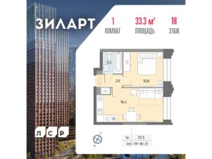 Продаётся 1-комнатная квартира в доме ЗИЛАРТ СПАРК общей площадью 33.3 кв. метров на 18 этаже.