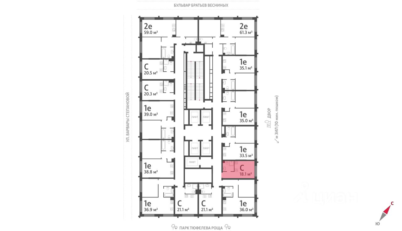Продаётся квартира-студия в доме ЗИЛАРТ СПАРК общей площадью 18.1 кв. метров на 36 этаже.