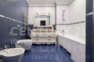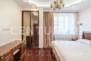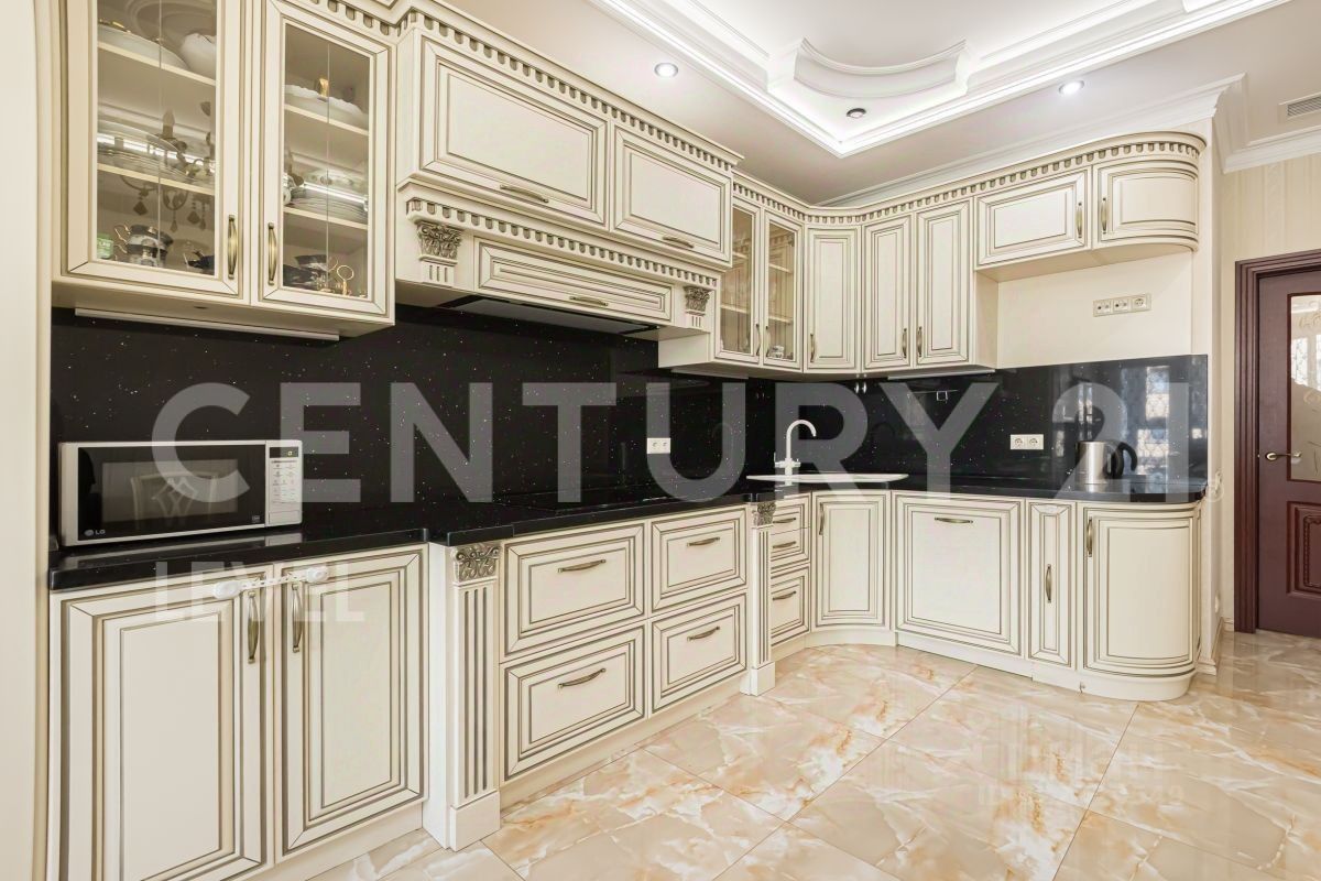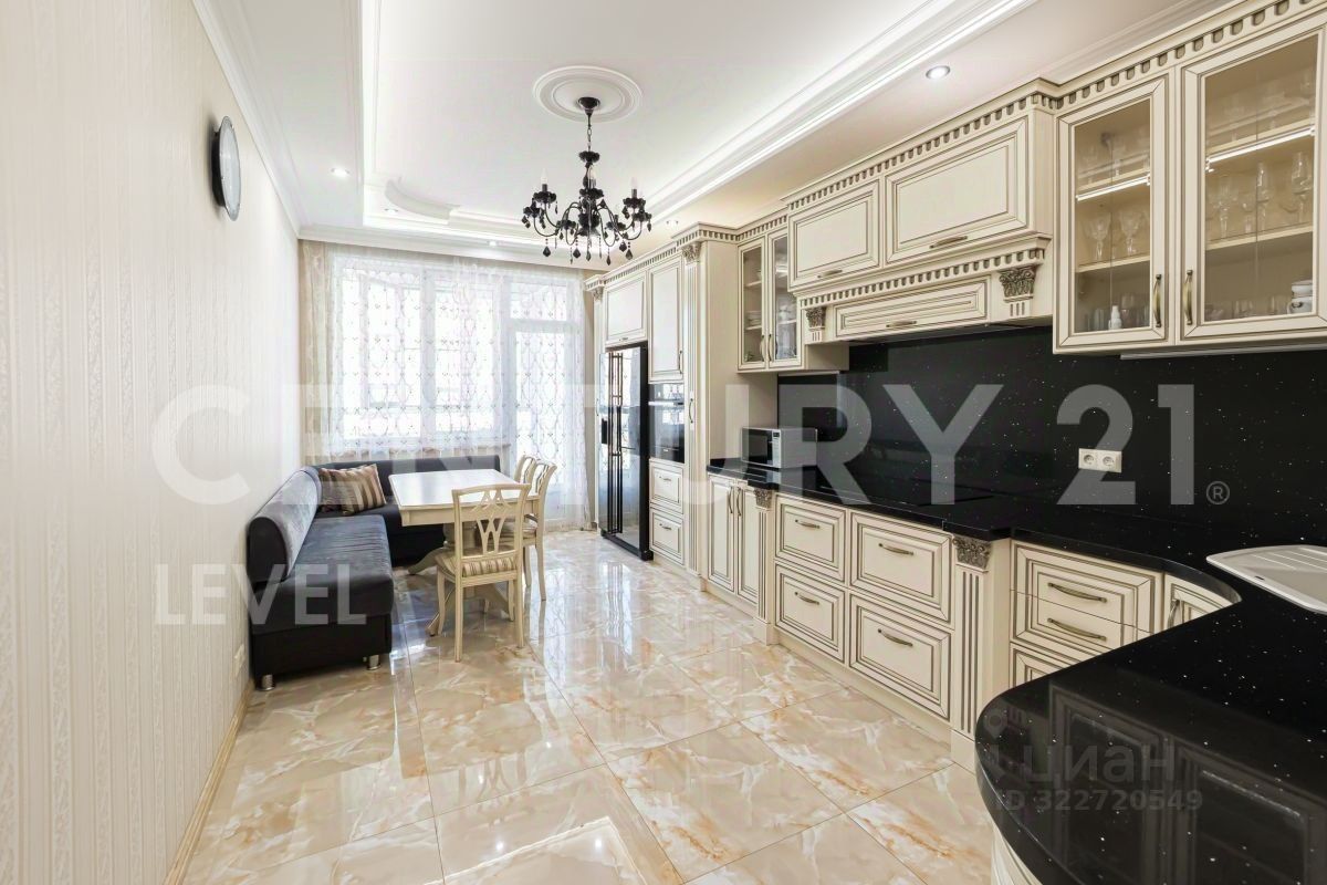 Квартира включает просторную кухню с обеденной зоной и лоджией, гостиную, три изолированные спальни, коридор с гардеробной, душевую с постирочной, гостевой санузел и ванную. Продается со всей мебелью и техникой.
