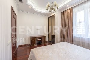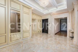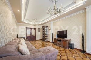 - В отделке квартиры использованы: дорогие высококачественные материалы, венецианская декоративная штукатурка, потолочная лепнина с элементами сусального золота, пилястры, капители, кессоны.