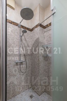 - Душевая с итальянской мозаикой и трапом. Встроенный шкаф со стиральной машиной