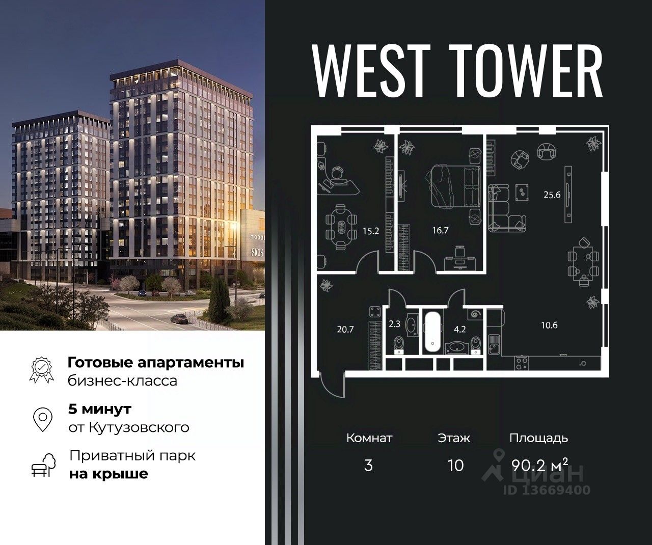 Продаются апартаменты в многофункциональном комплексе бизнес-класса West Tower в ЗАО.