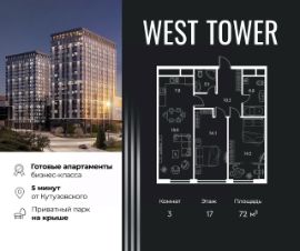 3 - комнатные апартаменты в West Tower это идеальные апартаменты для индивидуальности. Простор открытой планировки, в сочетании с инфраструктурой комплекса и отличной экологией вокруг дают отличную основу для покорения вершин. Здесь только самое необходимое. Эти апартаменты больше других подобных подходят для зонирования. Можно легко отделить хоум офис от кухни, а пространство для приема гостей от зоны отдыха.