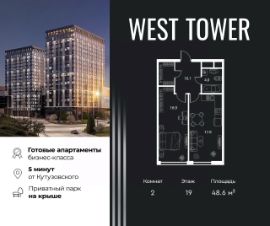 West Tower — апартаменты с премиальным сервисом на Аминьевском шоссе. Развитая инфраструктура и хорошая транспортная доступность. Рядом три станции метро: Аминьевская, Давыдково и Мичуринский проспект. У подножия коплекса находится Природный заказника Долина реки Сетунь, который дополнен собственным парком на крыше.