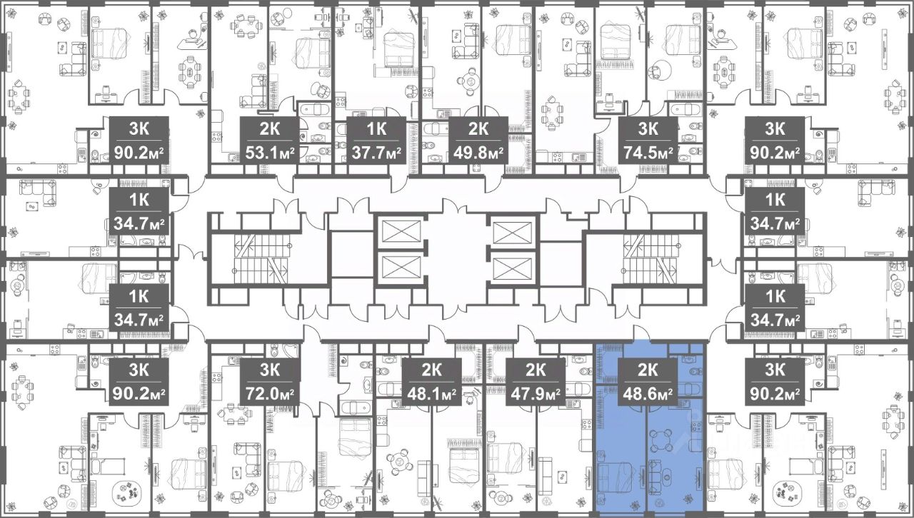 Этаж: 19, комнатность: 2