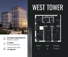 3 - комнатные апартаменты в West Tower это идеальные апартаменты для индивидуальности. Простор открытой планировки, в сочетании с инфраструктурой комплекса и отличной экологией вокруг дают отличную основу для покорения вершин. Здесь только самое необходимое. Эти апартаменты больше других подобных подходят для зонирования. Можно легко отделить хоум офис от кухни, а пространство для приема гостей от зоны отдыха.