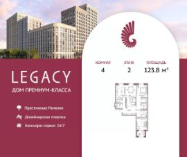 Просторная светлая квартира общей площадью 120,2 м2 на 10-м этаже премиального жилого комплекса Legacy, расположенного в прекрасном зеленом районе Раменки.