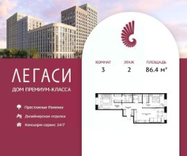 Светлая квартира общей площадью 83 м2 на 4-м этаже премиального жилого комплекса Legacy, расположенного в прекрасном зеленом районе Раменки.