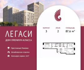 Светлая квартира общей площадью 83 м2 на 4-м этаже премиального жилого комплекса Legacy, расположенного в прекрасном зеленом районе Раменки.