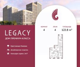 Светлая квартира общей площадью 83 м2 на 4-м этаже премиального жилого комплекса Legacy, расположенного в прекрасном зеленом районе Раменки.