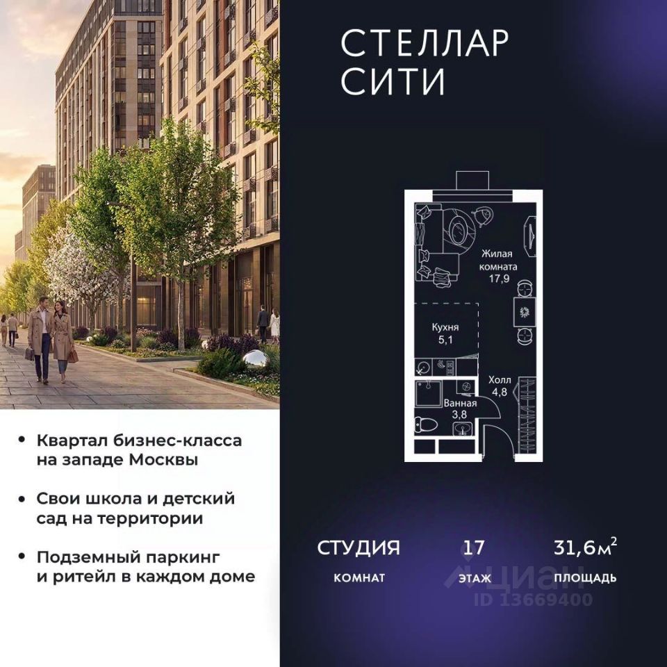 Продается квартира от надежного застройщика Tashir Estate в квартале бизнес-класса Stellar City в ЗАО Москвы.