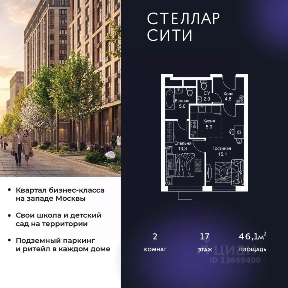 Продается квартира от надежного застройщика Tashir Estate в квартале бизнес-класса Stellar City в ЗАО Москвы.