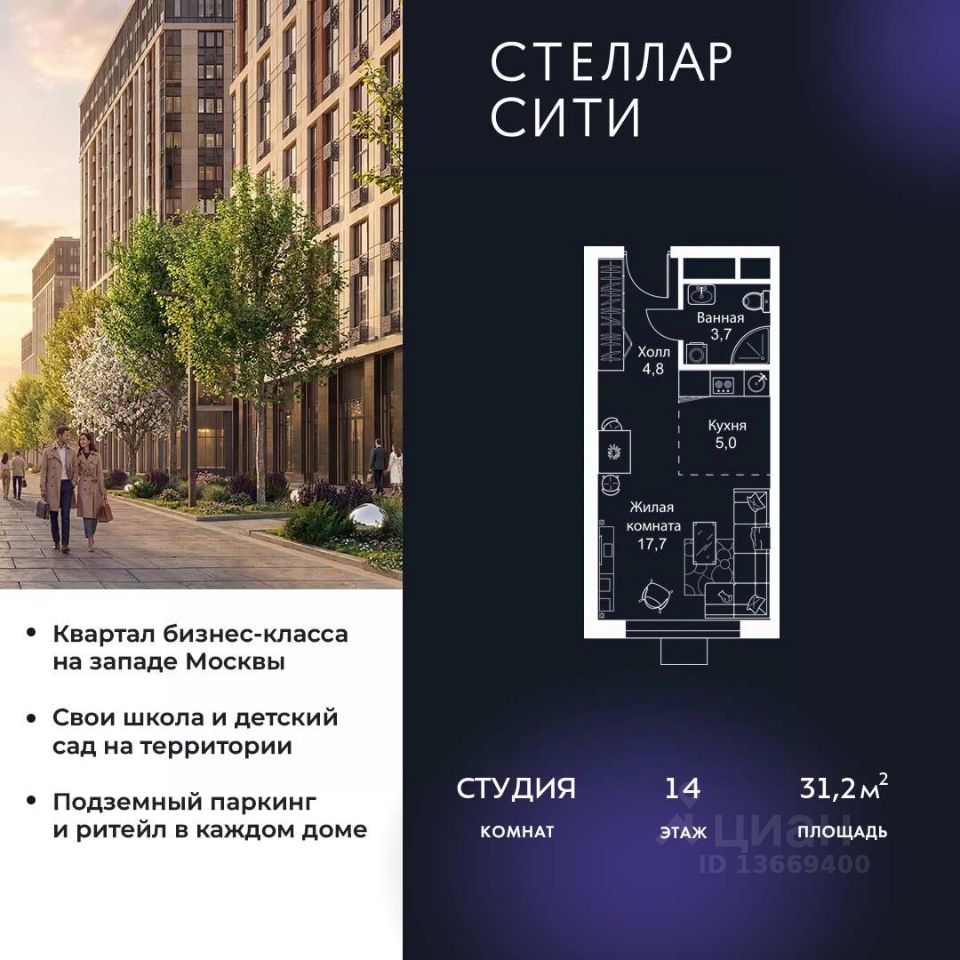 Продается квартира от надежного застройщика Tashir Estate в квартале бизнес-класса Stellar City в ЗАО Москвы.