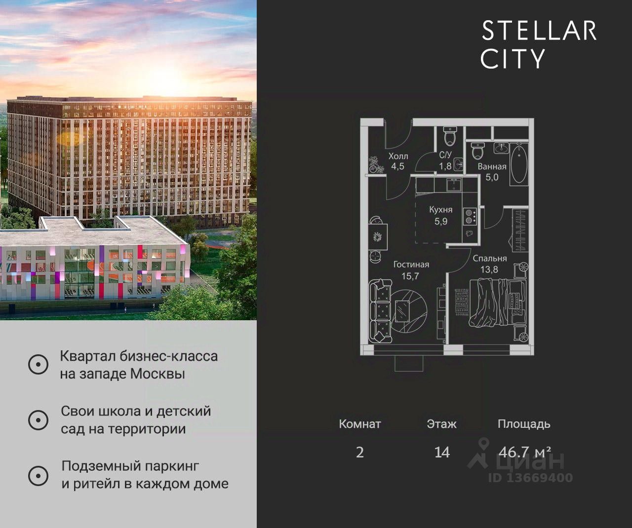 Продается квартира от надежного застройщика Tashir Estate в квартале бизнес-класса Stellar City в ЗАО Москвы.
